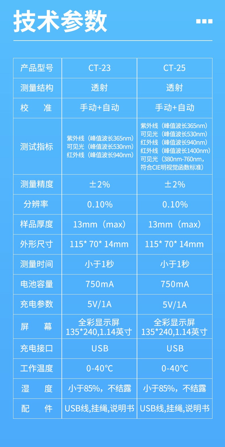 CT-23/25手持透光率儀鋼化玻璃薄膜塑料導光板半透明透過率檢測