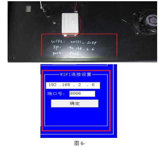 如果是第一次調(diào)試或使用軟件,建議檢查WIFI的IP地址和端口號(hào)設(shè)置是否正確,在“系統(tǒng)設(shè)置”對(duì)話框內(nèi),有“WIFI連接設(shè)置”項(xiàng),框內(nèi)有IP和端口號(hào)的信息,在設(shè)備的前面板打開后,有此車轍儀的相關(guān)信息(見圖4),如果對(duì)應(yīng)就是設(shè)置正確。
