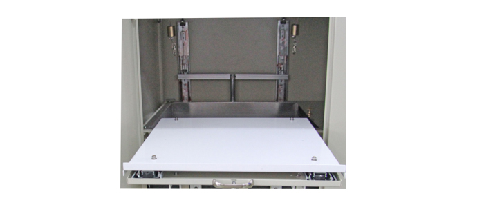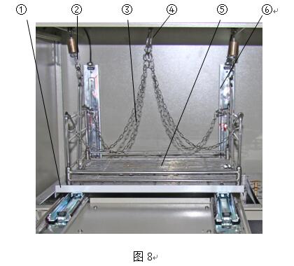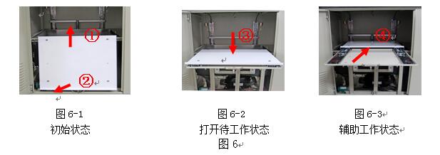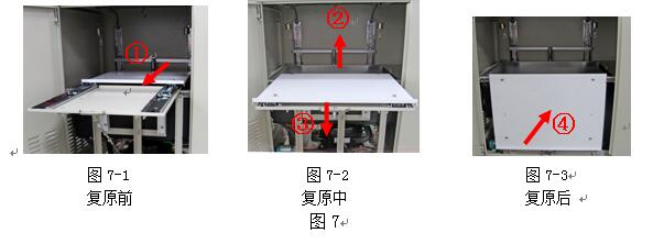 試驗(yàn)完成后,一般可把活動(dòng)托板處于打開(kāi)待工作狀態(tài),如果儀器長(zhǎng)期不用而需要關(guān)閉前門(mén),需要將活動(dòng)托板復(fù)原到初始位置,方法如下。