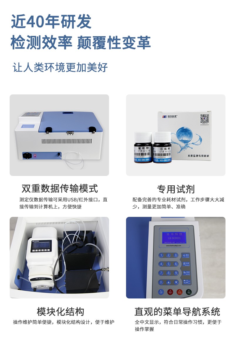 測定范圍:(5-50)mg/L(BOD濃度高于50mg/L的水樣需稀釋后檢測)