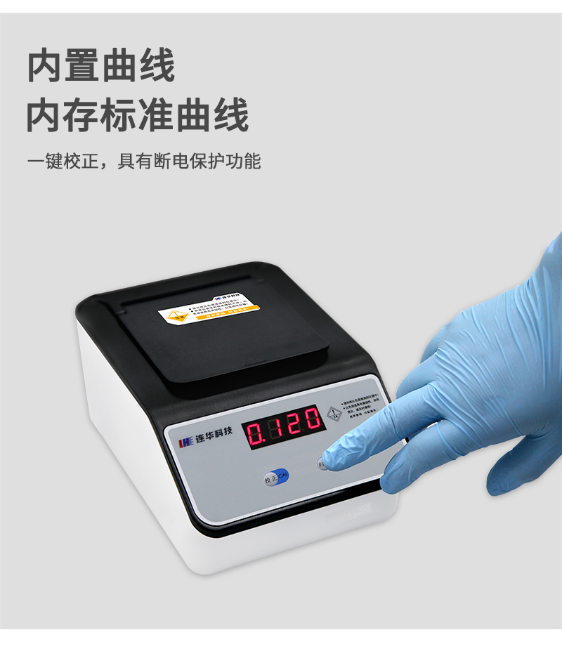 曲線參數(shù):內(nèi)存標準曲線,可直讀濃度, 具有斷電保護功能
