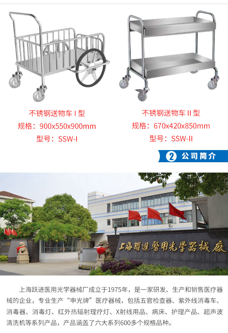 上海躍進醫用不銹鋼床鋪護理車送物車