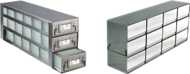 另一方面,抽屜架提供了更符合人體工程學的方法。盡管您無法一次查看機架中的每個框,但這些機架在每一層都包含單獨的抽屜,可輕松檢索您要查找的內容,而無需卸下整個機架。金屬對金屬的相互作用可以使不粘手,輕松地滑出機架,使您可以查看該行中的所有盒子。此版本允許您在機架中的每一行以及該行中的每個框上貼上標簽,以便于檢索樣品。